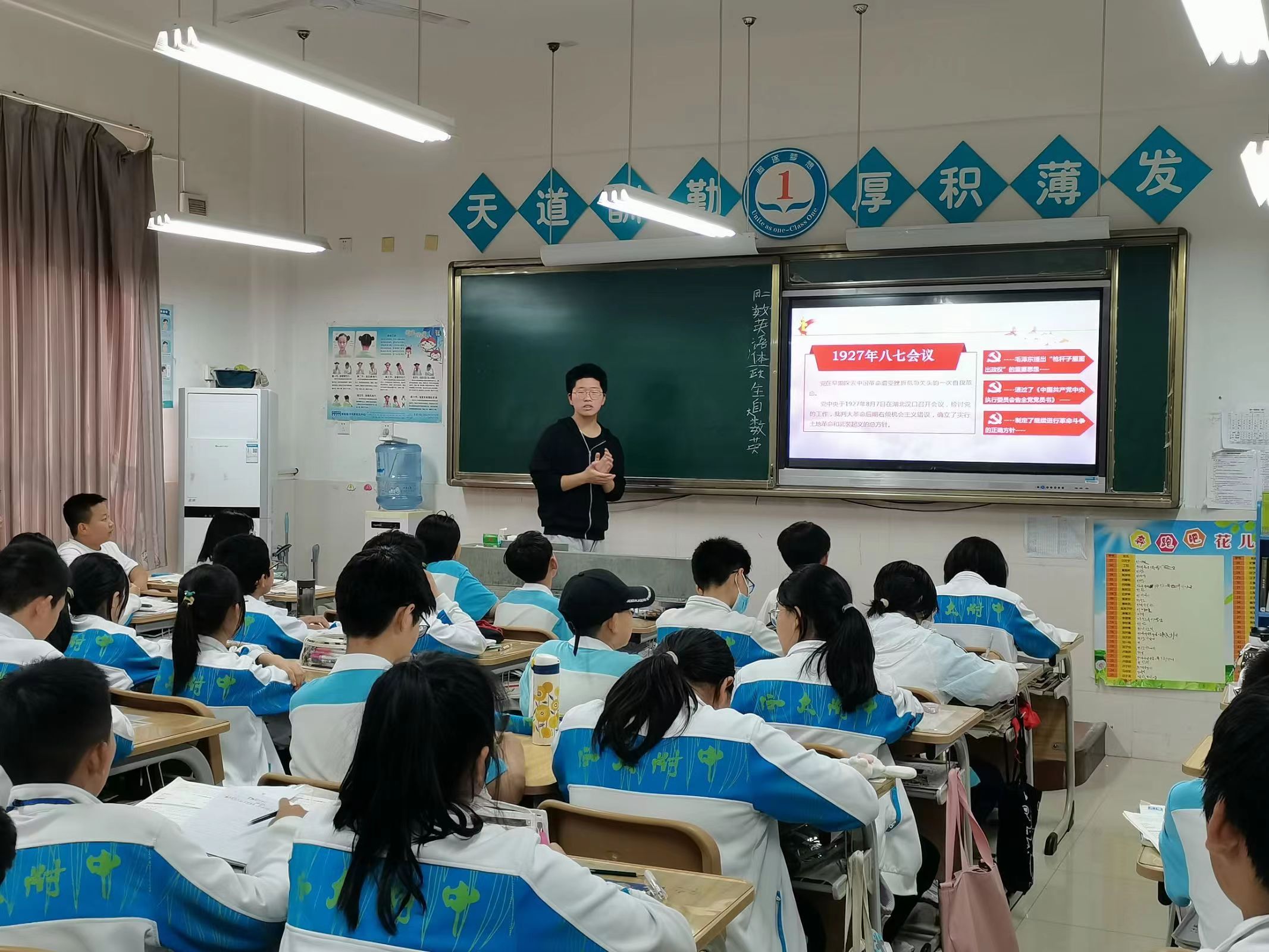 6月6日,pg电子官网“红桅杆”思政理论学习社团在长安区pg电子中国官方网站附属初级中学开展“思政宣讲进课堂”。社团成员以《习近平新时代中国特色社会主义思想学生读本》为主要内容,在七年级的两个班级中进行了思政宣讲。本次主讲人是来自22级中国近现代史基本问题研究专业的硕士研究生芮少辉和22级思想政治教育专业的硕士研究生李婷。