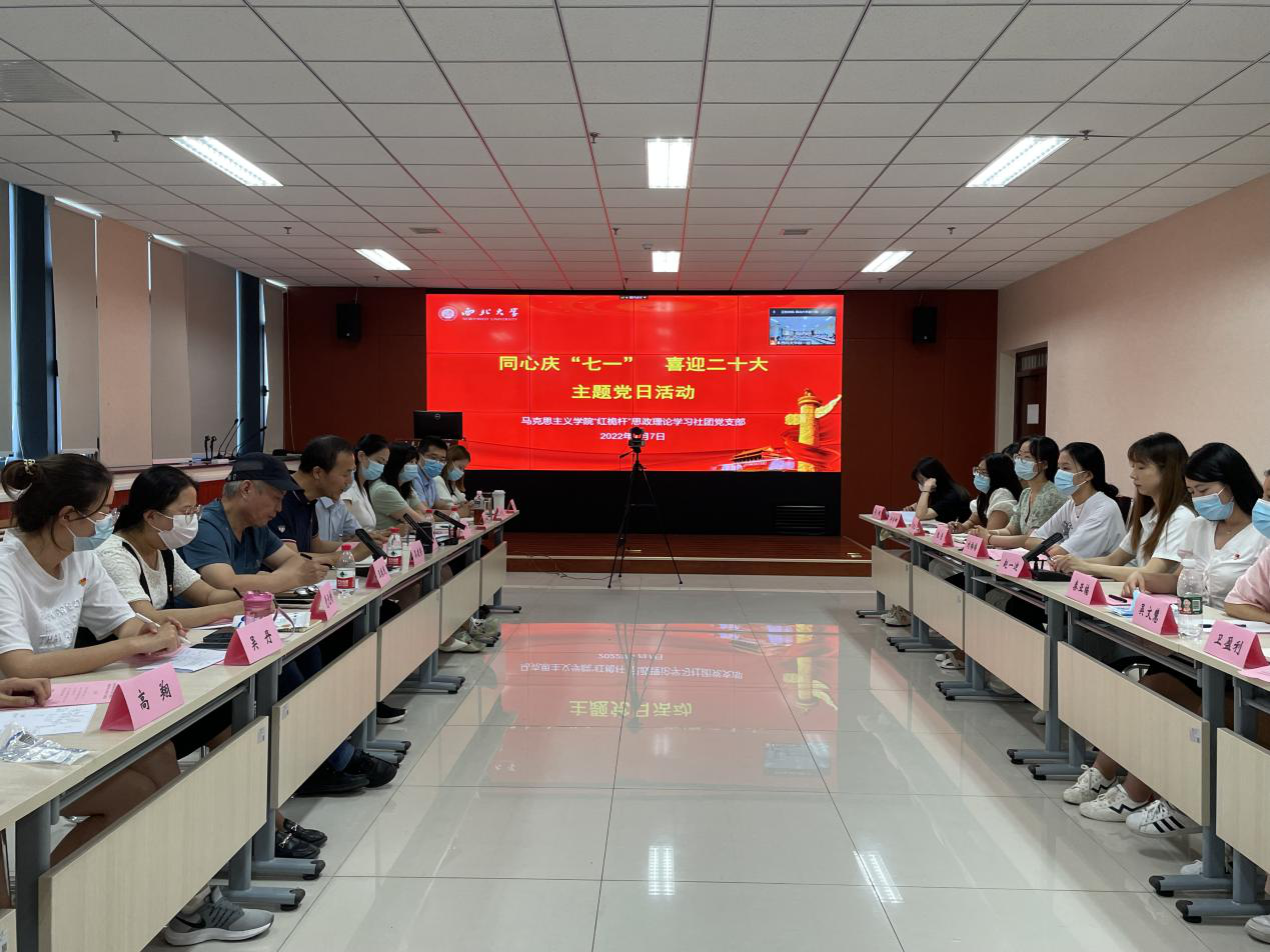 7月7日下午,pg电子官网“红桅杆”思政理论学习社团党支部开展“同心庆‘七一’ 喜迎二十大”主题党日活动。校党委副书记、pg电子中国官方网站院长吕建荣,院党委书记韩凯峰,院党委副书记邵平,院党委委员、工会主席王振民,“红桅杆”思政理论学习社团党支部全体党员参加活动。活动由党支部书记赵一迪主持。