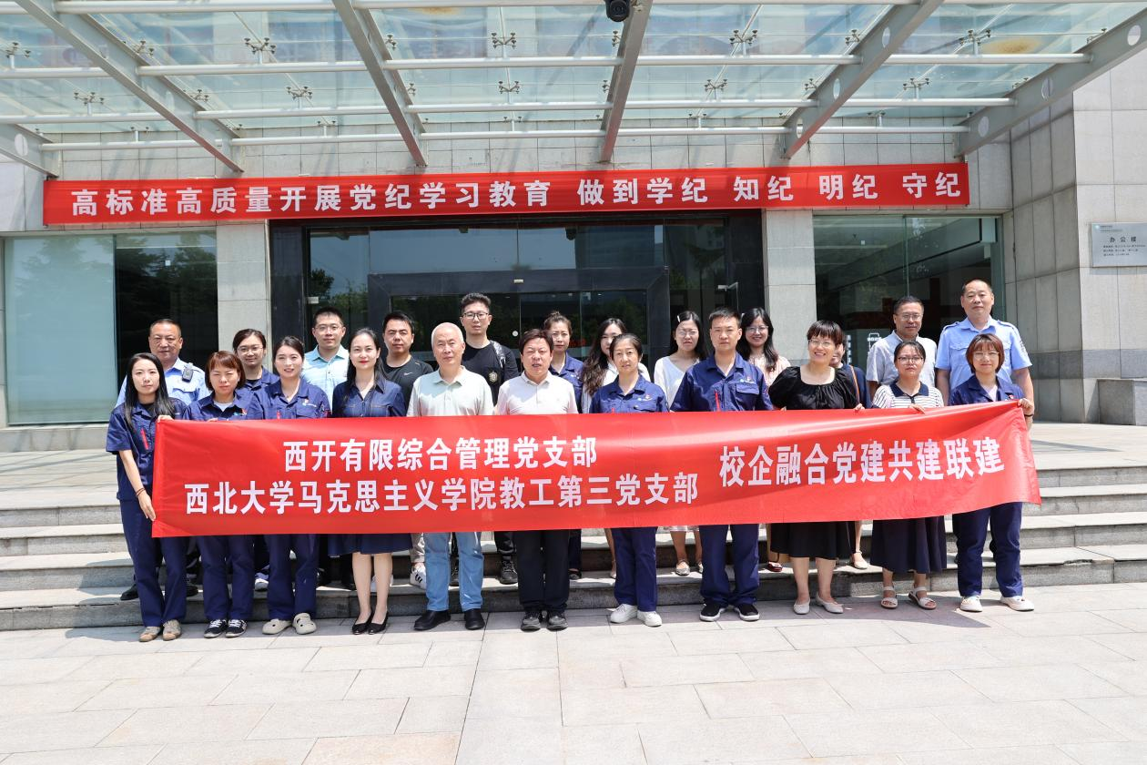 刘璇在致辞中对pg电子官网教工第三党支部一行的到来表示欢迎,并对西开有限公司基本情况作了介绍。她谈到,西开有限是我国第一个五年计划期间国家156项重点工程之一,已成为中国输变电设备制造行业高压、超高压、特高压及智能开关设备的研发和生产基地。她表示,希望通过此次联学共建活动,聚焦党纪学习教育、政研课题研究、驻企拓岗活动,推进结对共建,实现校企党建联动新格局。
