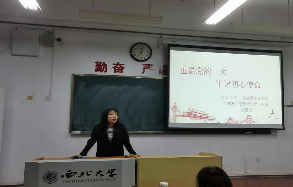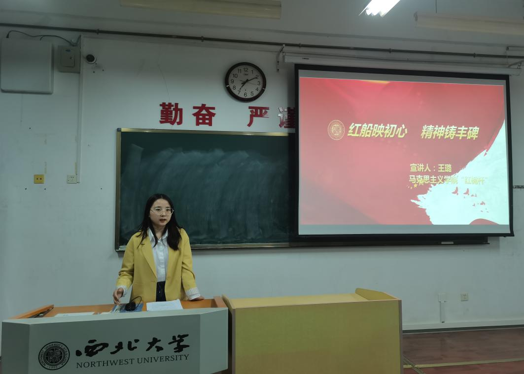 文化遗产学院团委书记雷茂林对“红桅杆”思政理论学习社团做了简要介绍,并向同学们强调了学习四史的重要性。随后三位主讲人依次进行宣讲。高嘉琪以《重温党的一大 牢记初心使命》为题,生动地从中国共产党的诞生历程、建党精神以及当代青年的使命担当等方面进行了阐述;王璐以《红船映初心 精神铸丰碑》为题,从红船寄托着一份信念、红船传承着一种精神、红船绽放着时代光芒三个方面讲阐述了红船精神;曹会会以《弘扬延安精神,争做时代新青年》为题,从延安精神的产生、延安精神的内涵、新时代如何弘扬延安精神三个方面进行讲解,加深了同学们对延安精神的了解。