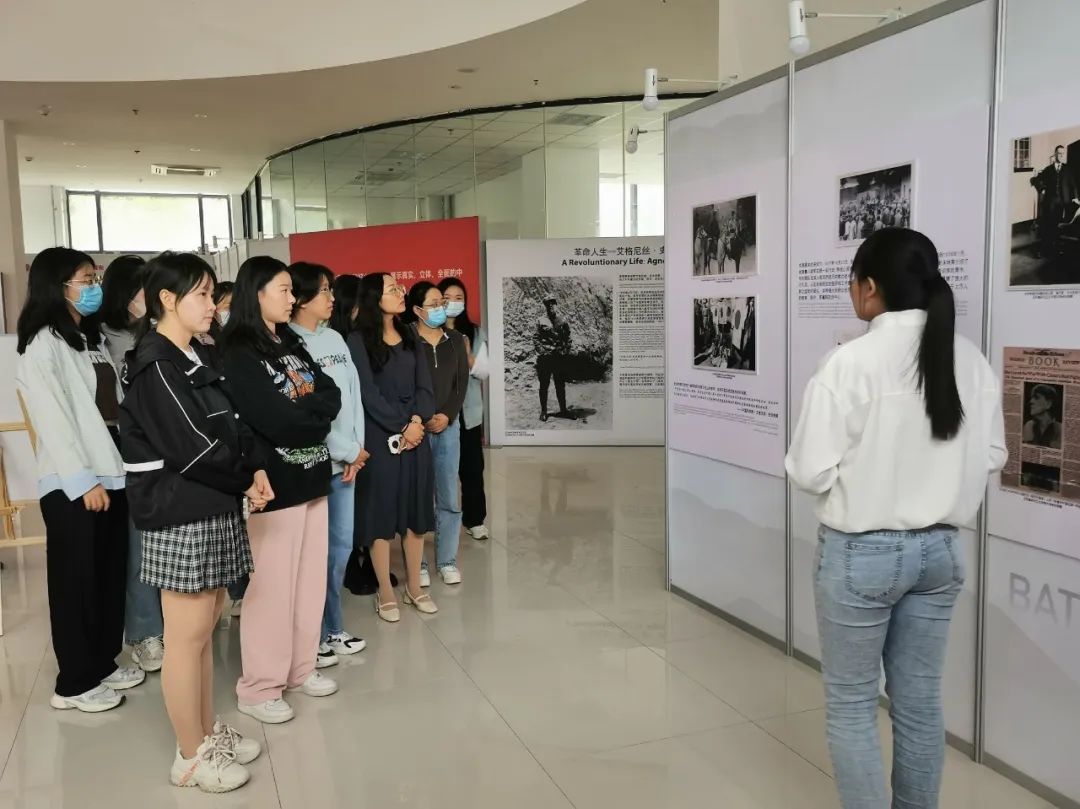 9月23日下午,pg电子官网开展艾格尼丝·史沫特莱主题展览参观活动,院团委书记刘娟、pg电子中国官方网站第一期“青马班”全体成员参加了此次活动,外国语学院曾一新同学和胡朝霞同学对展览进行了讲解介绍。