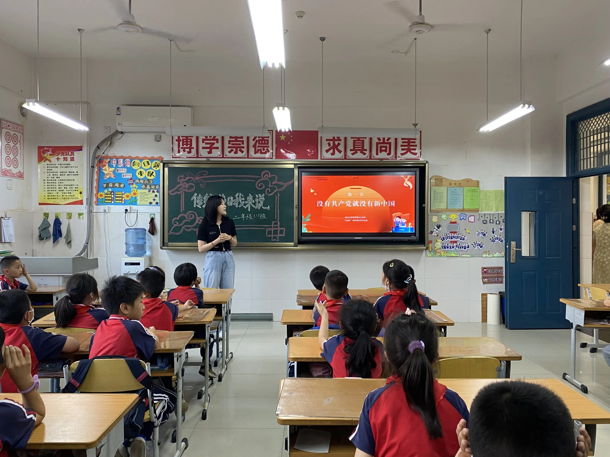 郭颖慧以《没有共产党就没有新中国》为主题,讲述了在中国共产党的带领下英雄先烈为实现民族解放、国家独立而英勇前进的故事,让同学们感受到革命先辈们在探索救国救民道路中勇于奉献的精神,增强民族自豪感和自信心。