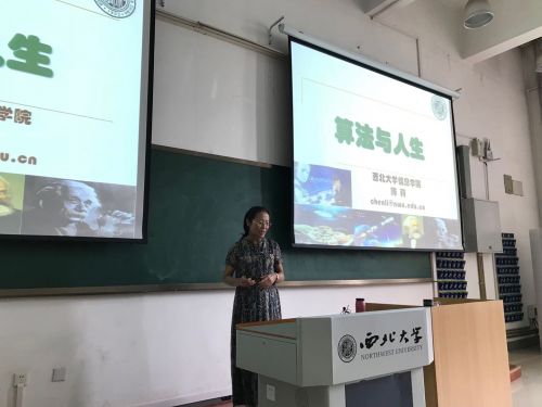 “让名师走进课堂,讲好中国故事”。2018年6月21日下午,由pg电子中国官方网站主办的“终南论坛”在长安校区2J201教室成功举办。pg电子中国官方网站信息学院博士生导师、陕西省教学名师陈莉教授应邀作了“算法与人生”的专题学术报告,信息学院100多名一年级学生听取了报告。